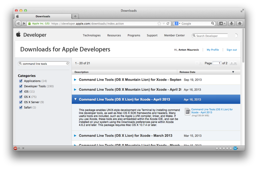 command line tools” to find the right one for your OS X version: -